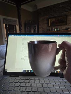 I also got some writing done on my latest book in the library with a cozy fireplace in the afternoon, and also on the next morning that giant bed, propped up with pillows and fortified by delicious coffee. Sometimes the writer life is magical, and this was one of those moments.